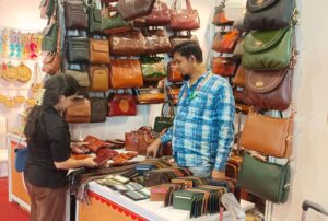 बिहार के चंपारण से आए लेदर उत्पाद स्टॉल के मंजूर आलम ने बताया कि लेदर के पर्स, लेडीज पर्स, बैग, ऑफिस बैग, ट्रॉली बैग, बेल्ट एवं अन्य उत्पाद के खास डिजाइन को लोग खूब पसंद कर रहे हैं l यहां पर पांच सौ से लेकर 10 हजार तक के विभिन्न लेदर उत्पाद उपलब्ध है l वहीं अररिया बिहार राकेश कुमार के हैंडलूम कढ़ाई शूट उत्पाद के स्टॉल पर बेहतरीन डिजाइन वाले कॉटन कढ़ाई शूट के साथ भागलपुरी सिल्क दुपट्टा भी लड़कियों एवं महिलाओं को खूब पसंद आ रही है एवं जमकर खरीदारी कर रहे हैंl